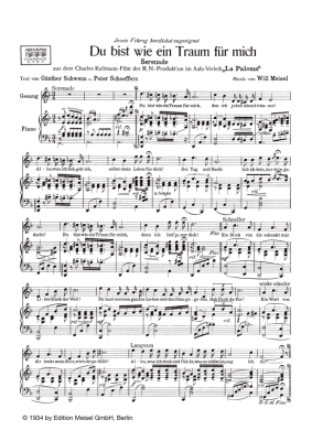 Du bist wie ein Traum für mich - Noten für Klavier und Gesang