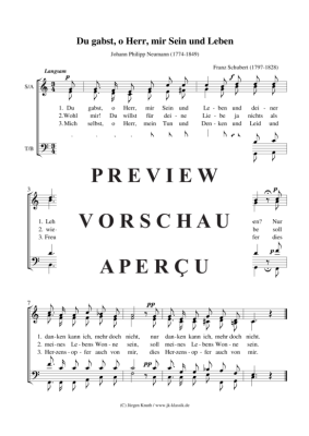 Du gabst, o Herr, mir Sein und Leben - Noten für Gemischter Chor Franz Schubert
