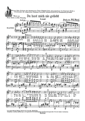 Du hast mich nie geliebt - Noten für Klavier und Gesang Helge Rosvaenge
