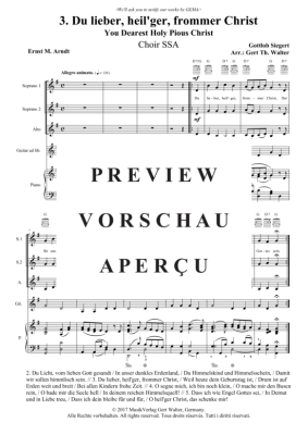 Du lieber, heil´ger, frommer Christ - Noten für Frauenchor, Gitarre + Klavier Gottlob Siegert