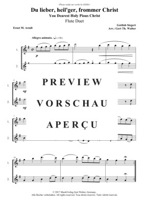 Du lieber, heil´ger, frommer Christ - Noten für Flöten Duett Gottlob Siegert