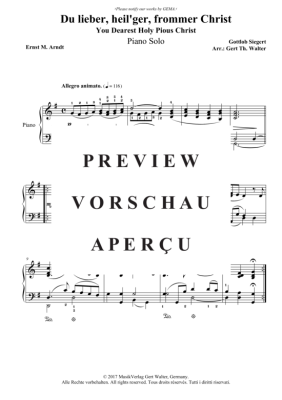 Du lieber, heil´ger, frommer Christ - Noten für Klavier Solo Gottlob Siegert
