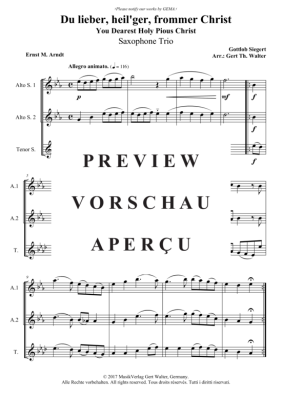 Du lieber, heil´ger, frommer Christ - Noten für Saxophon Trio Gottlob Siegert