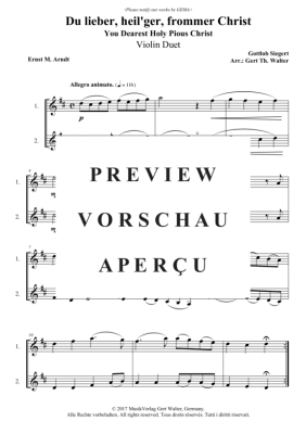 Du lieber, heil´ger, frommer Christ - Noten für Violin Duett Gottlob Siegert
