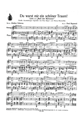 Du warst mir ein schöner Traum - Noten für Klavier und Gesang aus: Ball der Nationen (Operette)