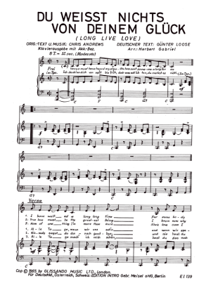 Du weisst nichts von deinem Glück (Long Live Love) - Noten für Klavier und Gesang Sandie Shaw