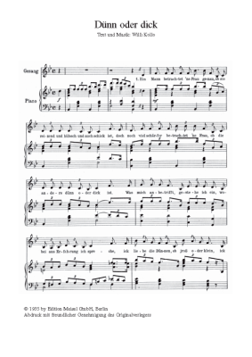 Dünn oder dick - Noten für Klavier und Gesang