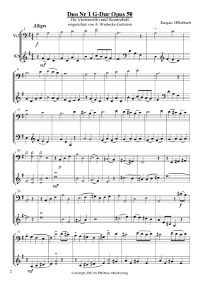 Duo Nr. 1 G-Dur Opus 50 - Noten für Cello und Kontrabass Jacques Offenbach