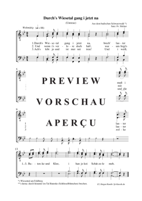 Durch´s Wiesetal gang i jetzt na (Untreue) - Noten für Männerchor Unbekannt, Satz: Satz: Fr. Silcher