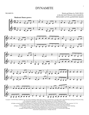 Dynamite - Noten für Trompete Taio Cruz