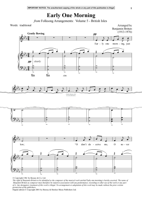 Early One Morning from 'Folksong Arrangements: Volume 5 - British Isles' - Noten für Gesang, Klavier English Folk Song