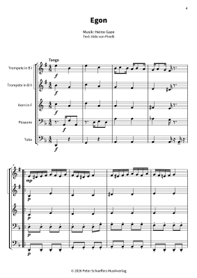 Egon - Schwungvoller Tango-Schlager - Noten fĂŒr BlechblĂ€ser Quintett Heino Gaze