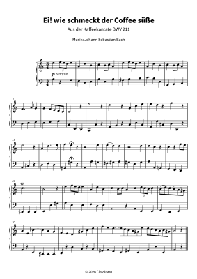 "Ei! wie schmeckt der Coffee süße" aus der Kaffeekantate BWV 211 ist ein charmantes, leicht spielbares Stück, das sich sofort vertraut anfühlt und auf dem Klavier schnell in den Fingern liegt.