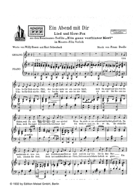 Ein Abend mit Dir - Noten für Klavier und Gesang aus: Ein ganz verflixter Kerl (Film)