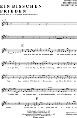Ein Bisschen Frieden - Noten für Trompete in B Nicole