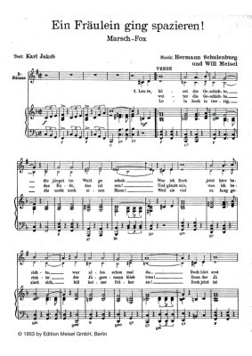 Ein Fräulein ging spazieren - Noten für Klavier und Gesang Marsch-Fox