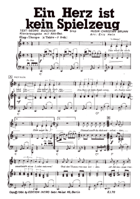 Ein Herz ist kein Spielzeug - Noten für Klavier und Gesang Siw Malmkvist