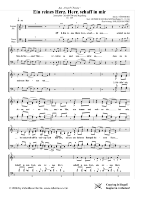 Ein reines Herz, Herr, schaff in mir EG 389 - Noten für Gemischter Chor und Klavier Holger Hantke