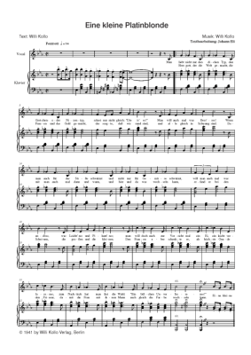 Eine kleine Platinblonde - Noten für Klavier und Gesang