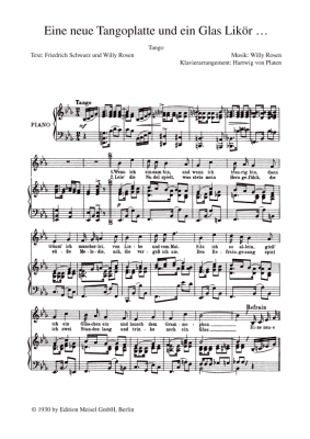 Eine neue Tangoplatte und ein Glas Likör - Noten für Klavier und Gesang Willy Rosen (Tango, 1930)