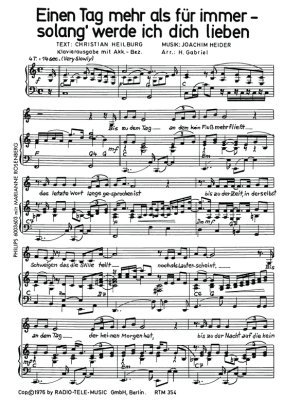 Einen Tag mehr als für immer - solang werde ich dich lieben - Noten für Klavier und Gesang Marianne Rosenberg