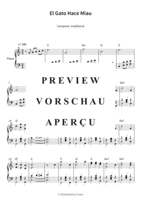 Dieses Notenheft enthält die Originalnoten zum spanischen Kinderlied "El Gato Hace Miau" für Klavier. Leichter Schwierigkeitsgrad in C-Dur.