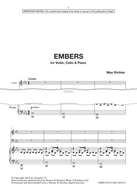Embers - Noten für Klavier, Violine, Violoncello Max Richter