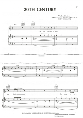 20th Century written by Marian Gold, Bernhard Lloyd and Rick Echolette, as performed by Alphaville arranged for voice and piano with guitar chords.