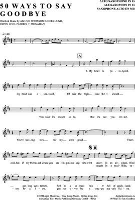 50 Ways To Say Goodbye - Sheet Music for Alto Saxophone Train
