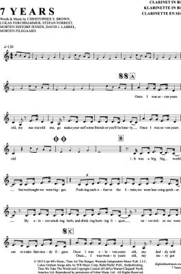 7 Years - Sheet Music for Clarinet in B-flat Lukas Graham