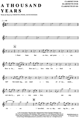 A Thousand Years - Sheet Music for Clarinet in B-flat Christina Perri