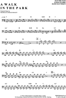 A walk in the park - Sheet Music for Bass Guitar Nick Straker Band