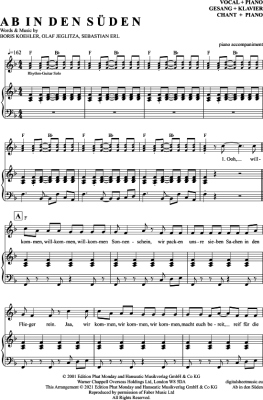 Ab In Den Süden - Sheet Music for Voice with Piano Accompaniment Buddy Und Dj The Wave