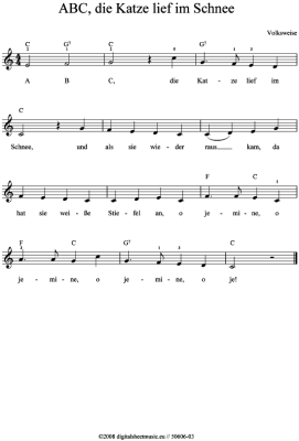 ABC, die Katze lief im Schnee - Sheet Music for Keyboard Weihnachtslied