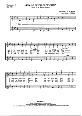 Abend wird es wieder - Sheet Music for women's choir Chr.H.Rinck (Satz: Georg Hilfrich)