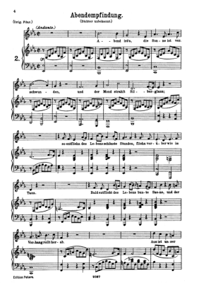 Abendempfindung K.523 - Sheet Music for Medium Voice and Piano Wolfgang Amadeus Mozart