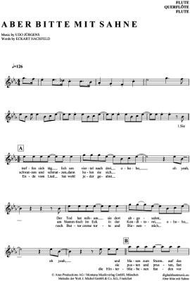 Aber bitte mit Sahne - Sheet Music for transverse flute Udo Jürgens