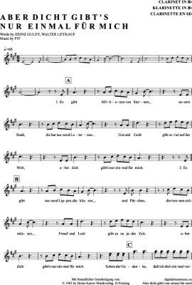 Aber dich gibt´s nur einmal für mich - Sheet Music for Clarinet in B-flat Semino Rossi
