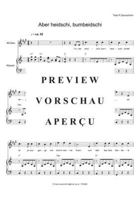 Aber heidschi bum beidschi - Sheet Music for alto saxophone + piano Zaunschirm, Franz