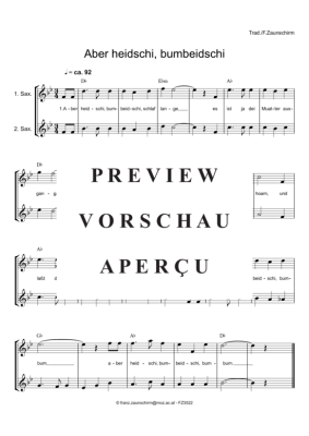 Aber heidschi bum beidschi - Sheet Music for Saxophone duet 2x alto saxophone Zaunschirm, Franz
