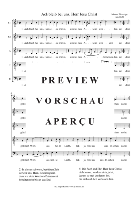 Ach bleib bei uns, Herr Jesu Christ - Sheet Music for Mixed SSATB Johann Bierreige