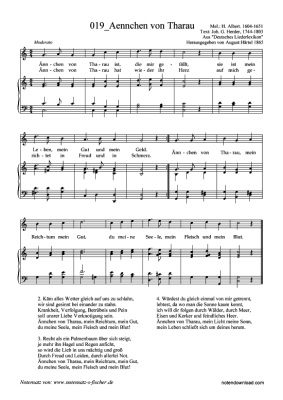 Aennchen von Tharau - Sheet Music for Piano and Voice H. Albert. 1604-1651 / Joh. G. Herder, 1744-1803