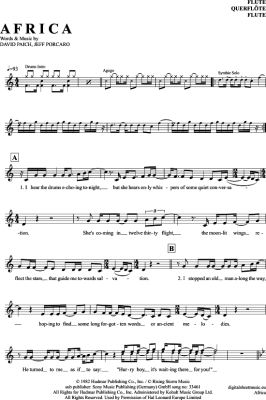 Africa - Sheet Music for transverse flute Toto