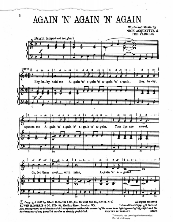 Again 'N' Again 'N' Again, as performed by Don Lang, arranged for voice and piano with guitar chords.