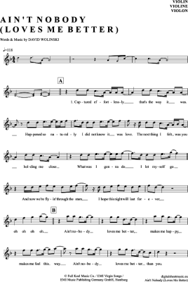 Ain´t nobody (loves me better) - Sheet Music for violin Felix Jaehn feat. Jasmine Thompson