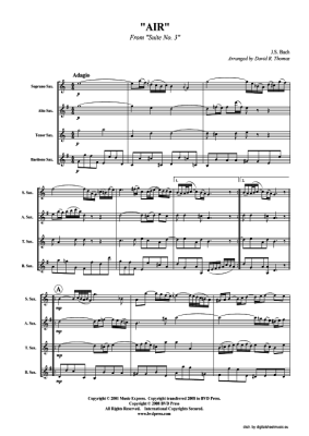 Air on the G String (Saxophon-Quartett S(A) - Sheet Music for ATB J. S. Bach, BWV 1068 (arr. Thomas)