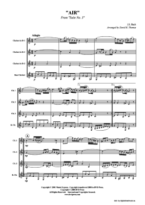 Air on the G String - Sheet Music for clarinet quartet J. S. Bach, BWV 1068 (arr. Thomas)