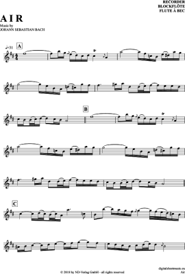 Air - Sheet Music for recorder Johann Sebastian Bach
