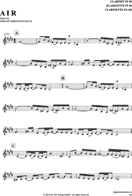 Air - Sheet Music for Clarinet in B-flat Johann Sebastian Bach