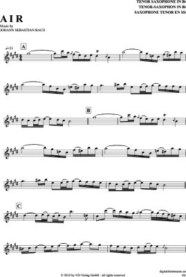 Air - Sheet Music for Tenor Saxophone Johann Sebastian Bach